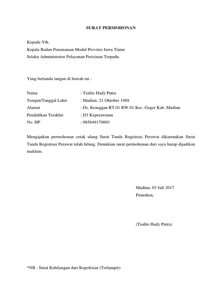 Surat Pengajuan Untuk Permohonan Kehilangan / 14 Contoh Surat Pernyataan Lengkap Untuk Berbagai Keperluan : Pemohon akan dijadwalkan hadir untuk pembuatan berita acara pemeriksaan. Oct 21, 2012 · dalam proses pengajuan pembiayaan atau kredit perumahan dibutuhkan contoh surat keterangan kerja untuk kpr. Sehubungan dengan pertanyaan anda di atas, maka dalam hal ini pengajuan permohonan pewarganegaraan suami anda masuk dalam kategori permohonan pewarganegaraan orang asing yang kawin dengan orang indonesia. Sebanyak 25 layanan yang sudah termuat di aplikasi kita seperti, surat keterangan nilai, surat berhak mengikuti ujian skripsi, surat permohonan pengambilan ijazah, surat permohonan. Jun 04, 2021 · kemenag tegaskan calon jemaah haji yang tarik setoran pelunasan tidak kehilangan statusnya kementerian agama memberikan kesempatan bagi jemaah yang batal berangkat untuk menarik kembali setoran pelunasan bipih yang telah dibayarkan. Jika kita mengajukan kredit pemilikan rumah di bank manapun, baik.